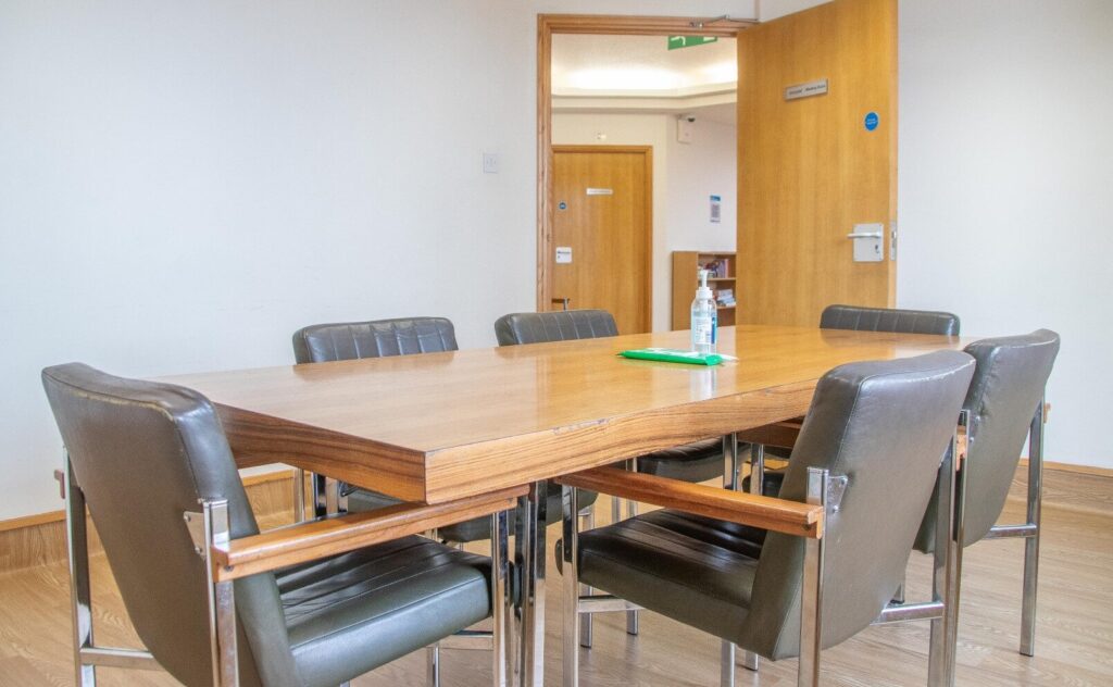 Meeting Room 1 is a traditional meeting room furnished with a classic Scandinavian style table and chairs to accommodate 6 to 8 people
