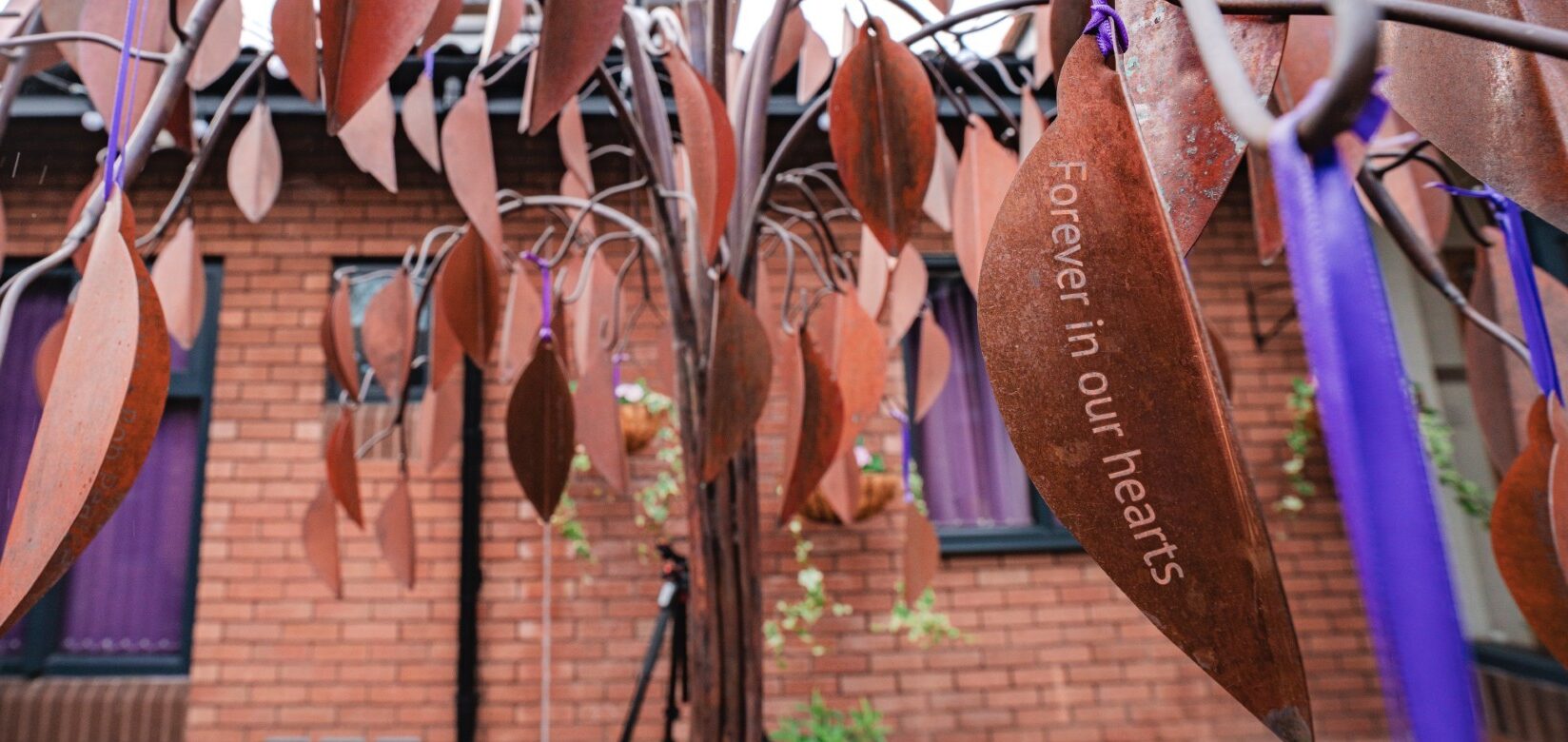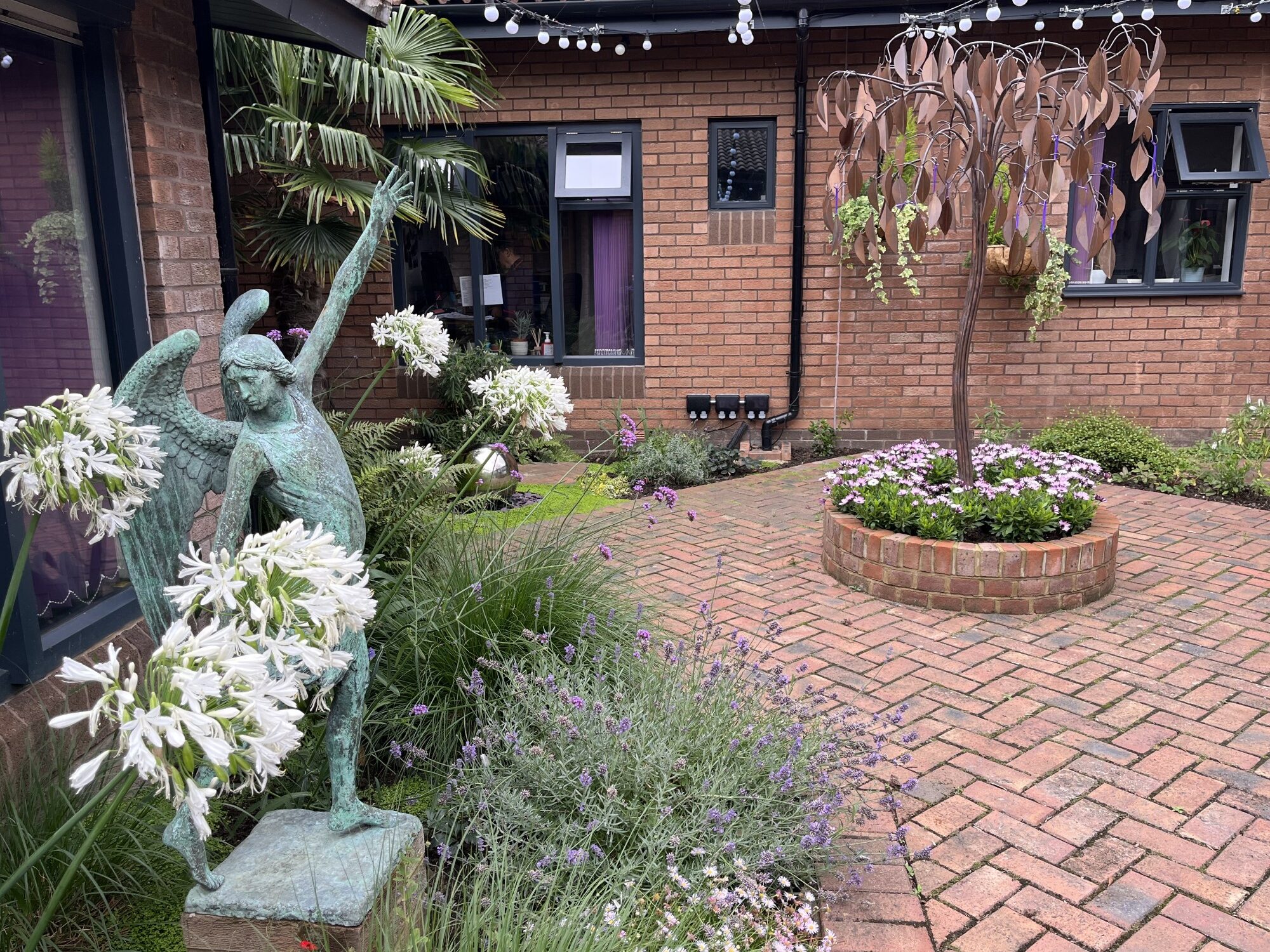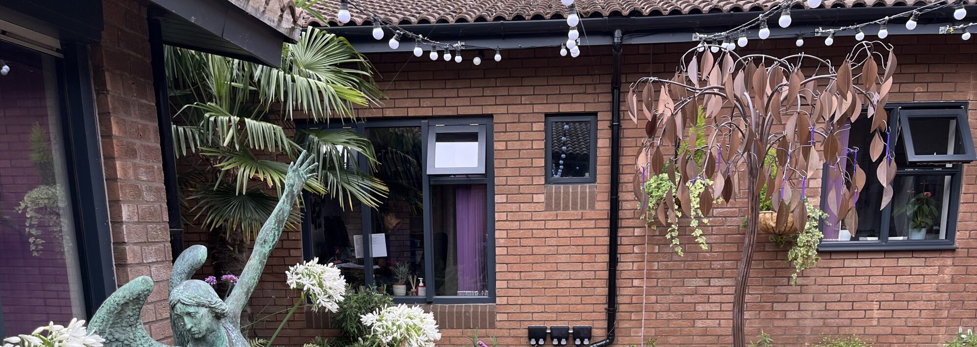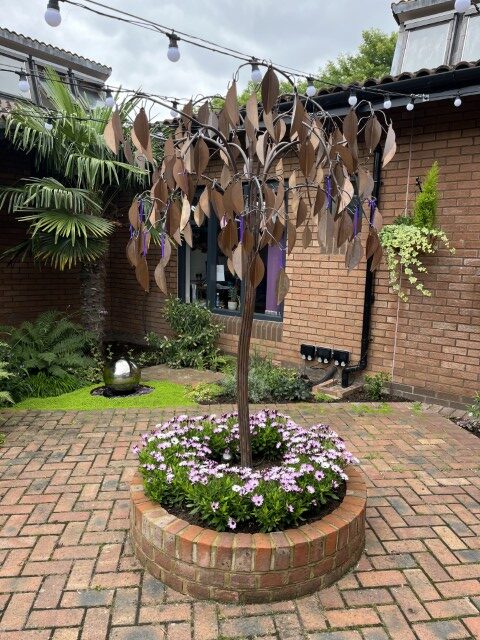 Our Tree of Life is a beautiful handmade copper sculpture situated in our courtyard garden, next to our dedicated Reflective Space. From its branches hang delicate copper leaves, each one engraved in memory of someone special.