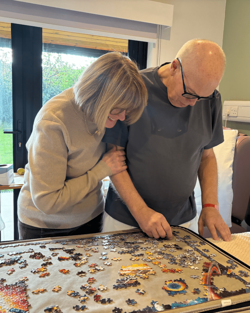 Peter and his wife Debbie are spending their afternoons side by side, working on a puzzle in their room on the ward. It’s become one of their favourite ways to spend time together. Nurses drop in to check on Peter’s comfort, for a chat, and sometimes to help find the next puzzle piece.